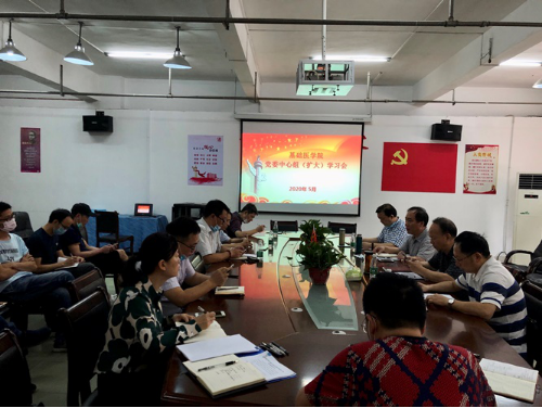 5月28日上午,基础医学院在华文楼105 会议室召开五月份党委中心组(扩大)学习会,学院党委委员、各党支部书记、部门及科室负责人参加了会议,会议由学院党委书记余朝阳主持。