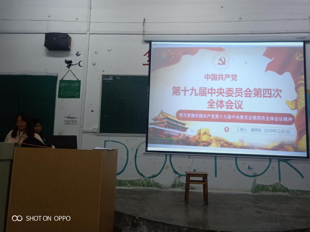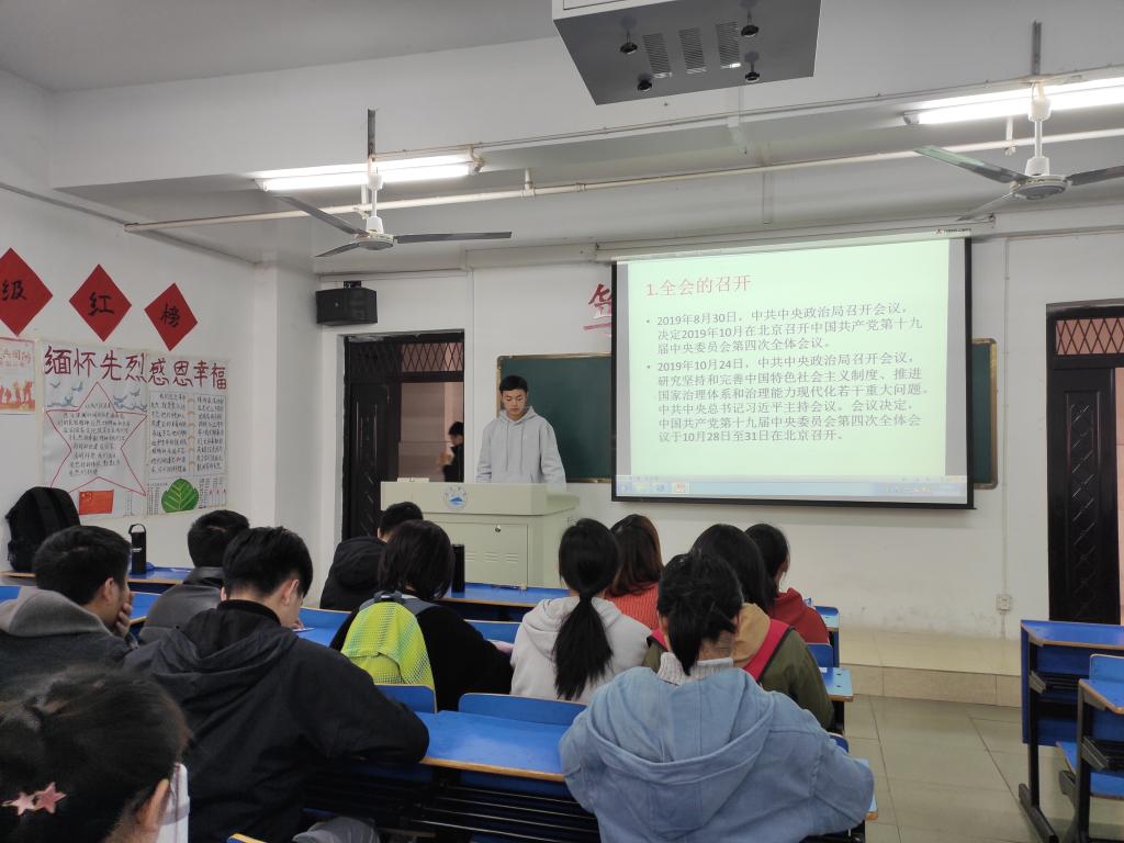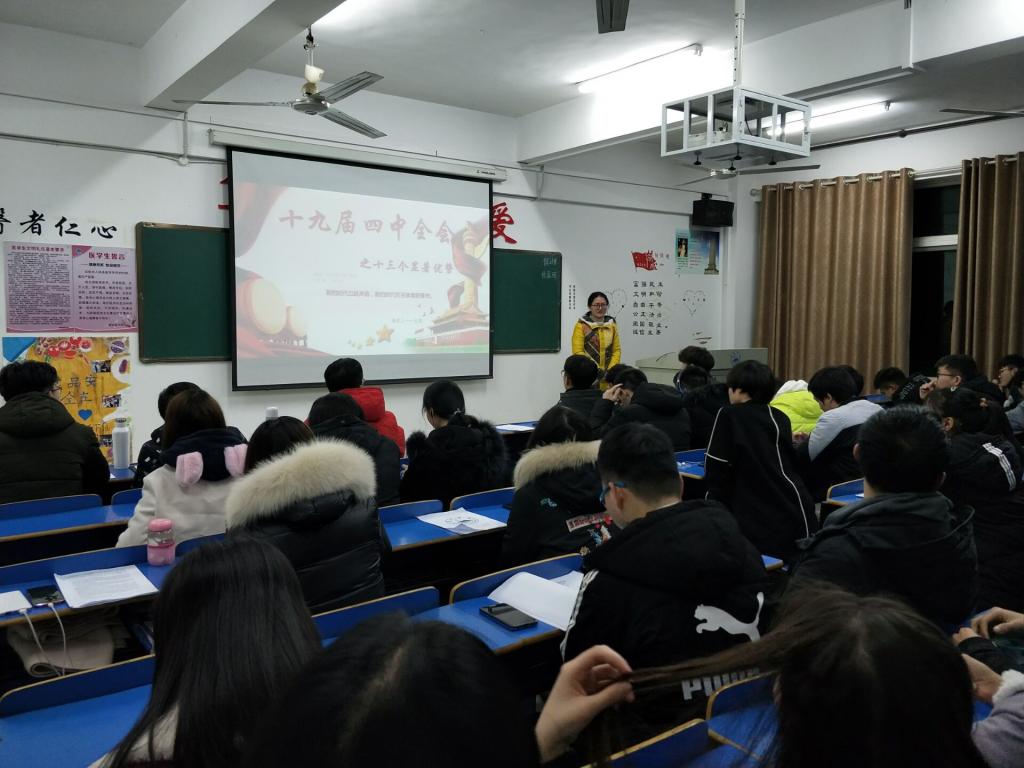 根据基础医学院党委的工作安排,各班级于12月下旬陆续举行了学习十九届四中全会精神主题班会,学生党支部组织入党积极分子到各班级开展十九届四中全会精神宣讲活动。