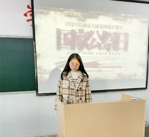 相信通过此次活动地开展,让同学们深刻地了解到了“国家公祭日”的内涵,也在他们的心中树立了不忘屈辱,守护和平的坚定信念。