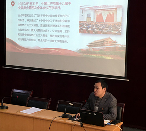 学习会上,赵文博士以《坚持制度自信,做忠诚于党的教育事业的人民教师》为题,结合国际国内形势,用通俗易懂、生动形象的语言介绍了“全会召开的深刻背景和重大主题”、“全会精神中的六大创新点”、“中国特色社会主义制度的自信之源”、“立足教师岗位实际,深入贯彻全会精神,办好人民满意的教育事业”等四个方面的内容,使全院教师深受教育。