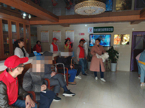 上午八时三十分,老师和同学们带着自己的礼物,步行前往浔阳区白水湖老年康乐中心。王院长和院内负责人们热情的欢迎党员教职工和同学们的到来,并为他们详细的介绍了院内情况,协同帮助开展医学知识宣传等志愿活动。