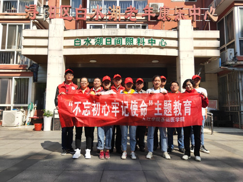 在学校开展第二批“不忘初心,牢记使命”主题教育活动之际,为贯彻落实主题教育精神,遵循为人民服务根本宗旨,发挥党员先锋模范作用,10月20日,基础医学院党员教师和青年志愿者们一同前往浔阳区白水湖老年康乐中心,开展“医学知识宣传,关爱老人健康”敬老院志愿服务活动,看望敬老院的老人们。