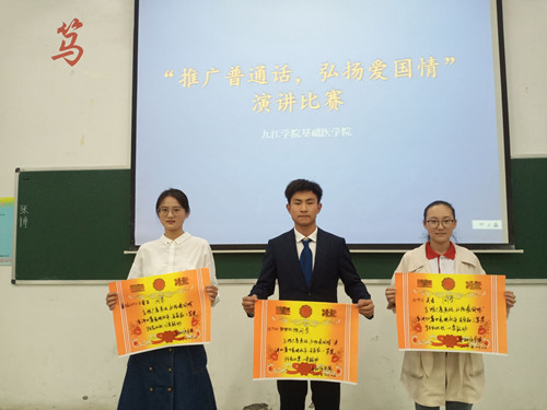 10月20日七点,基础医学院在华阶二举办了由基础医学院宣传部组织、以“推广普通话,弘扬爱国情”为主题的新生演讲比赛。本次演讲比赛旨在丰富同学们的校园生活,锻炼学生的语言表达能力,同时对普通话的推广进行宣传,弘扬爱国主义精神。