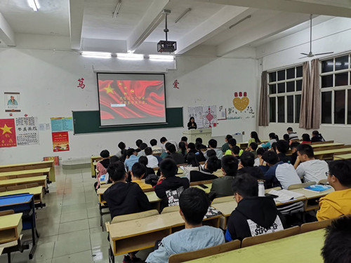 活动开始,A1911团支书鲁镇浩同学首先表达了对祖国七十华诞由衷的祝福和对国家多年来的飞速发展的自豪之情。紧接着,为同学们播放抗战烽火中进击的青年视频和红军抗战时的影像资料以及年迈的红军战士的访问回忆录,视频中老站士对抗战景象的生动描述给同学们留下了深刻地影响。随后,团支书还给大家播放了1949年新中国成立之后的影像,那一个个奋战在前线为祖国建设事业默默付出的战士和志愿者们深深打动了在场观影的同学们,还有习近平总书记实施精确扶贫后取得的巨大成果也让大家心潮澎湃。影片结束后朱紫怡同学总结了影片的内容并组织同学们上台发表自己的想法,表达对祖国的热爱之情。活动接近尾声,大家全体起立歌唱《我和我亲爱的祖国》,伴随着嘹亮的歌声,本次活动落下了帷幕。