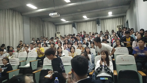 参赛的辩手们按照比赛规则依次发言,比赛紧张而又不失活泼,双方精彩的辩论时常博得在场观众的笑声和掌声。辩手们贴近日常生活、接地气的举例让同学们能更好地理解他们的想法和观点,不仅使同学们对辩论赛有一个初步的认识,也能更好地激发同学们对辩论的热情度。在自由辩论环节,双方进行了激烈的争论,气氛热烈。