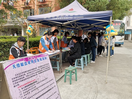 基础医学院和护理学院青年志愿者服务队于10月9日至10日在欧风园前组织志愿者们协助九江市中心血站的工作人员开展“无偿献血车进校园,爱心传递真情无限”主题活动。