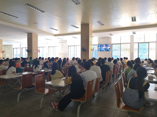 在观看的过程中,食堂前排座无虚席,同学们神情严肃、目光炯炯,神情坚毅,随着一个个方队走过,同学们的掌声不断响起,口中发出一声声惊叹的声音,当一件件大国重器在广场前巍然驶过时,每一位同学从心底涌起家国天下的壮志豪情,无不在为祖国的繁荣盛世而骄傲自豪,对祖国的明天期待万千,真诚的祈盼国家发展、和平永驻。