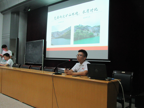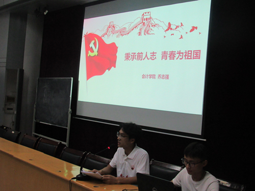 药生学院罗宇进同学首先以“青春三下乡,我们在路上”为主题的宣讲进行开场,并以精致的PPT向同学们展示了“为何三下乡”、“三下乡精神”以及志愿者队伍走访各乡镇、矿山和当地村委会展开讨论会的图片。紧接着,会计学院乔志强同学向同学们发出提问:“人在年轻时一定要奋斗吗?”强调青年之文明于奋斗之文明也!临床医学院王屹同学则表明作为一名医学生,应将青春与大爱奉献于医学,并应以治病救人为己任,这样才能更好的实现自我的人生价值。而作为唯一一位女宣讲人于奉鑫同学则向同学们展示了在“5.12”特大地震后她同来自全国各地的志愿者一同赶赴灾区,去帮助那些震后的孩子们补习功课、疏通心理障碍,帮助孩子们重拾信心,为他们带去了希望的种子。最后进行宣讲的是国旗班的班长杨昕磊,他向同学们详细讲解了国旗法,并希望同学们要爱护国旗、尊重国旗,因为五星红旗是我们中国人的标志和象征。