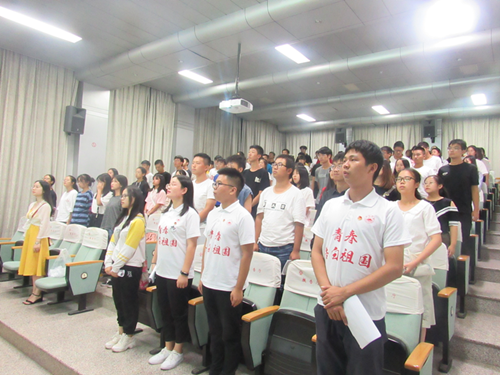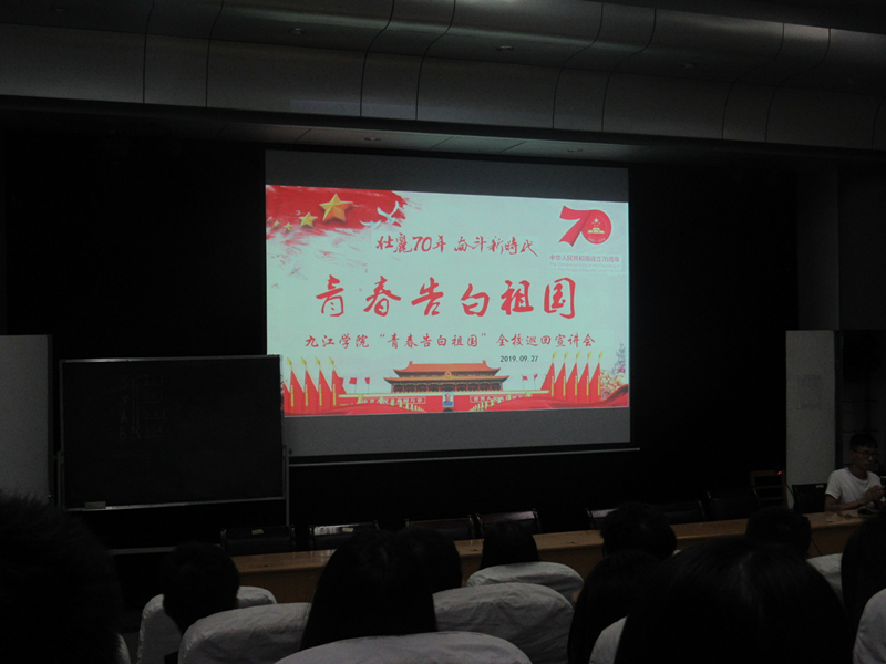 值此国庆节来临之际,为激励青年学生积极参与社会公益和志愿服务活动,用青春行动向祖国告白,庆祝祖国70周年华诞,在校团委的认真组织下,成立了“青春告白祖国”校级宣讲团,9月27日来到了浔东校区,在立本楼三楼报告厅开展“青春告白祖国”主题宣讲活动,向基础医学院、药学与生命科学院、护理学院的同学们介绍暑期“三下乡”和社会实践活动中的有益经验。