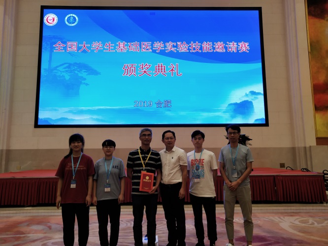 8月17日~8月20日,由中国高等教育学会医学教育专业委员会主办,安徽医科大学承办,安徽省病理生理学会协办的“第六届中国医学高等教育信息化论坛”会议在安徽合肥举行。同时,“全国基础医学大学生实验技能邀请赛”在安徽医科大学举行,比赛内容包括线上基础医学实验虚拟仿真比赛和线下动物实验操作比赛两部分。大赛吸引了来自全国22所医学类院校(其中大部分全国知名院校),共23只队伍参赛。我校由基础医学院许晓源副院长领队,基础医学实验中心赵勇副主任带队,付国明、张书岑、田娜、余娇等四名17级临床医学专业同学组队参赛。经过同学们的努力拼搏,最终,在全部23只参赛队伍中,总分排名第12名(其中线上虚拟仿真比赛排名第10),获得大赛二等奖的佳绩。