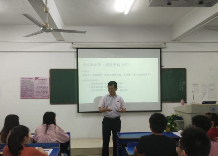课堂上,刘燕老师采用PBL(problem-based learning)教学方法,以问题为导向,结合临床病例,系统全面地回顾、总结和复习了《病理学》课程重点理论知识。授课过程中,师生互动频繁,课堂气氛活跃。刘校长认真听取授课内容,仔细观察学生课堂表现情况,并进行了详细记录。