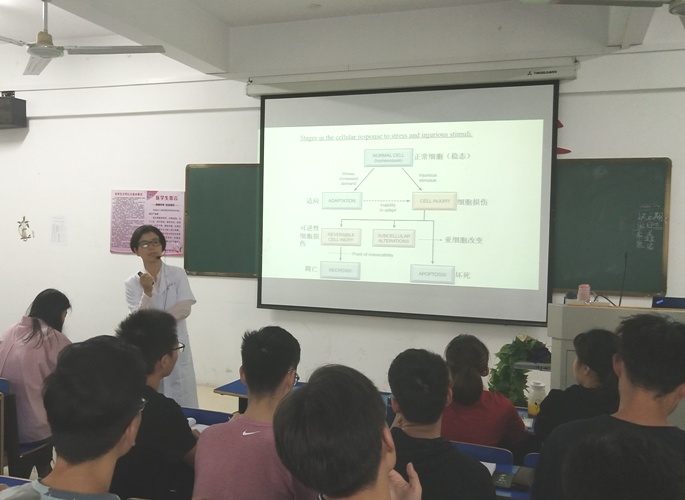 5月31日下午,刘晓东校长来到浔东校区华文楼207教室,随堂听取了基础医学院刘燕老师为临床A1771班口腔医学专业学生讲授的《病理学》理论复习课。
