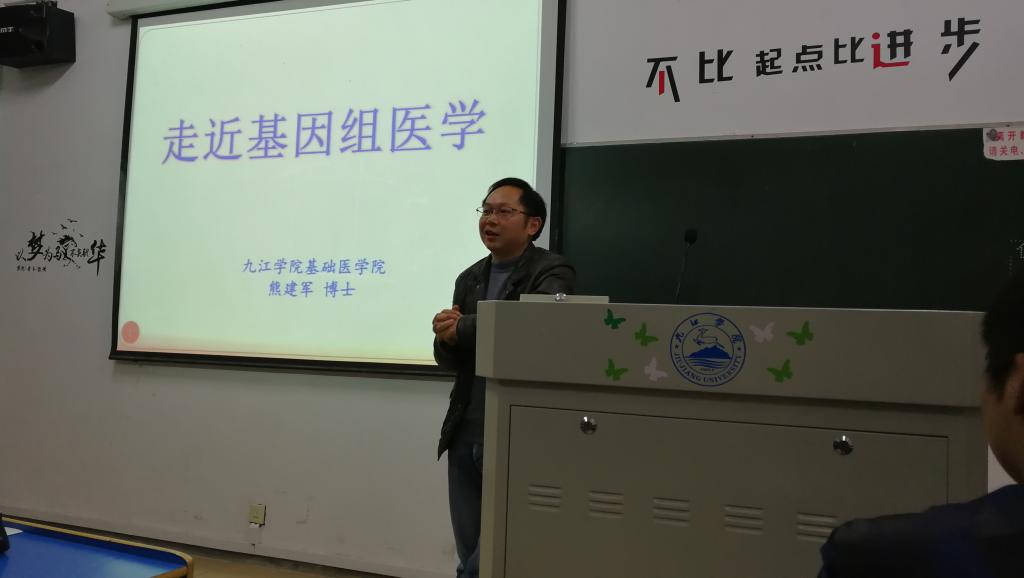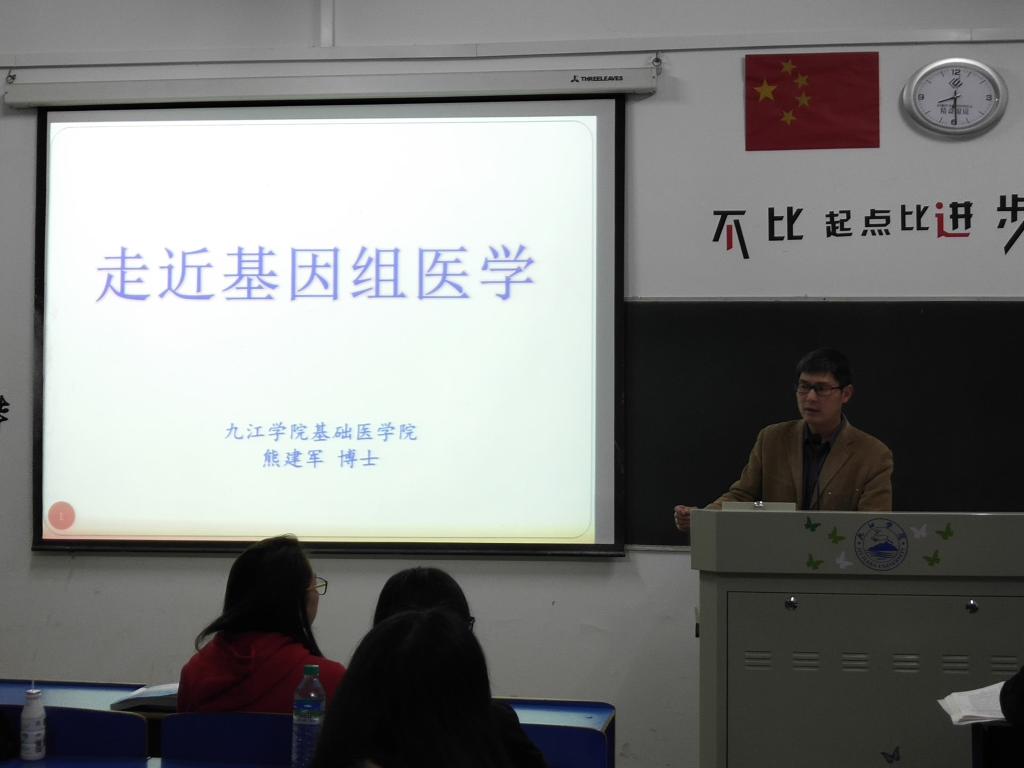 11月25日晚,基础医学院熊建军博士在庐峰校区面向16级临床专业本科同学举行了一次题为《走近基因组医学》的学术讲座。
