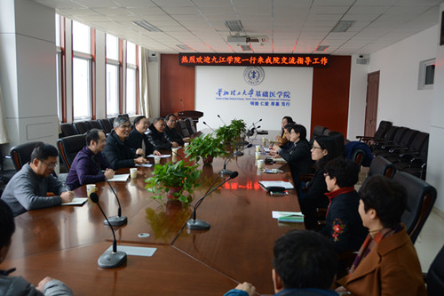 首先,华北理工大学基础医学院院长高俊玲和党委书记张宇新代表学院热烈欢迎九江学院基础医学院一行的到来。随后,副院长孙影介绍基础医学院的概况、变革、课程建设、实验室建设情况等。座谈会后,副院长王海涛、副院长安海娟分别带领我校形态学组、机能学组老师与对应科室实地考察建设情况。