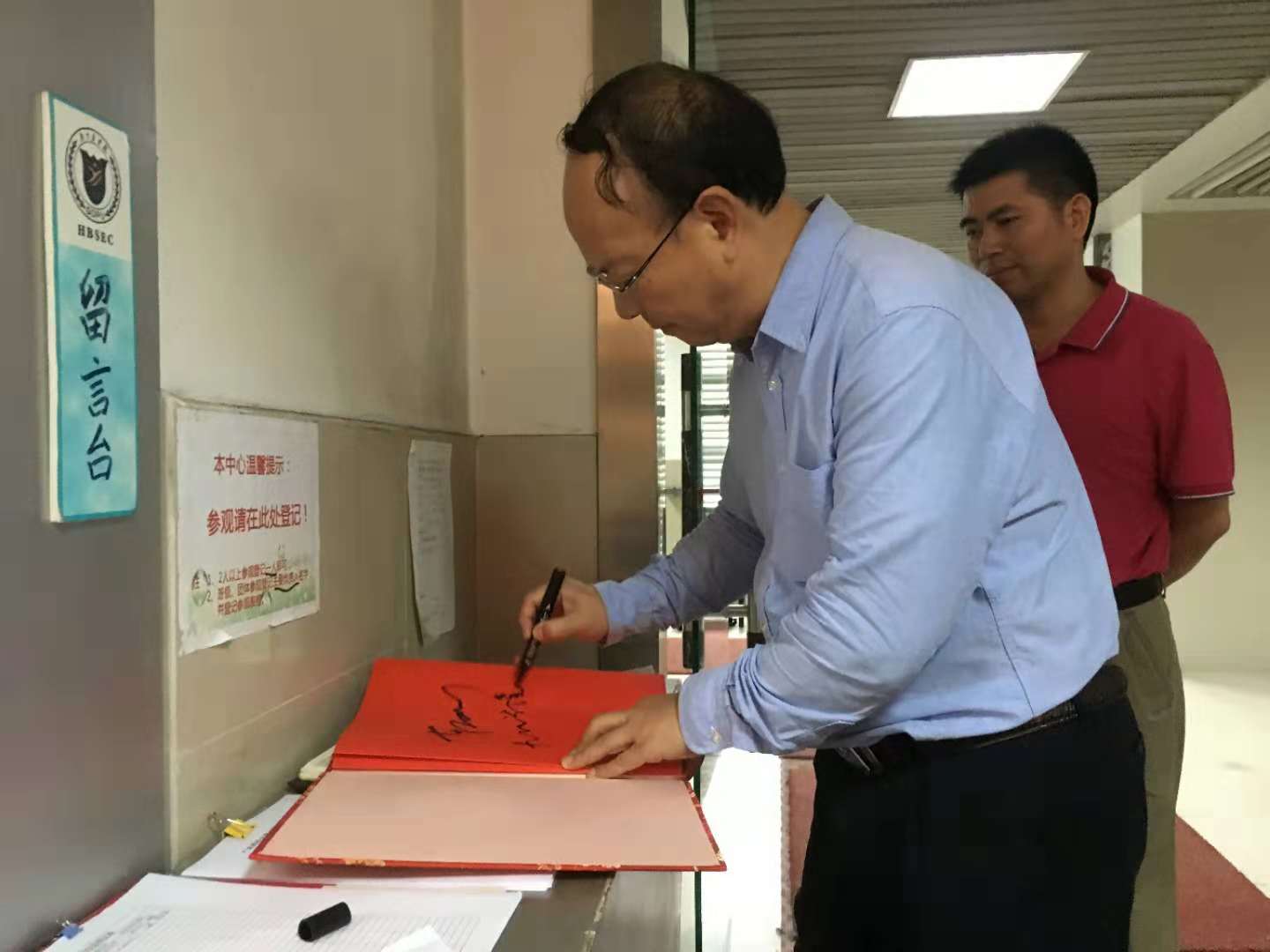 陈副院长特别指出解剖楼应注重装修材质,墙面瓷砖贴到顶部,以便于清洗,房顶应有防腐防霉涂料,尤其注意通风,可以建设单面楼,窗户可开,以便于自然通风,陈副院长建议实验室建设前应由专业的实验室设计团队对水、电布局进行精细设计。车院长对陈院长的建议表示感谢,并为人体科学教育中心题词。
