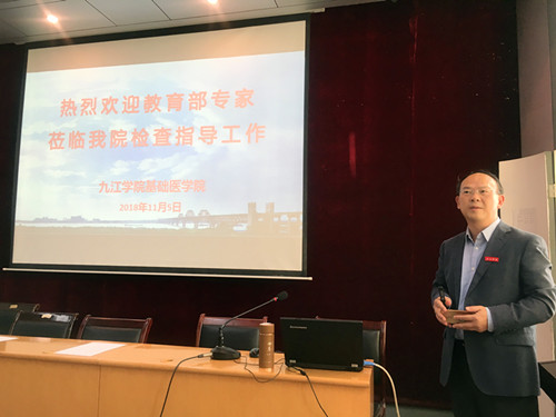 车向新院长按照审核评估汇报要求,以PPT的形式从学院概况、本科教育教学工作以及主要问题与挑战等方面进行了汇报预演,与会人员就进一步完善汇报提出了中肯的意见和建议。随后,许晓源副院长传达了《九江学院迎接教育部本科教学工作审核评估专家组进校考察工作方案》的文件精神,对迎评工作的各个环节做了详细布置,并利用“蓝墨云班课”教学智能软件,对全院教职工进行了《审核评估宣传手册》答题考试。
