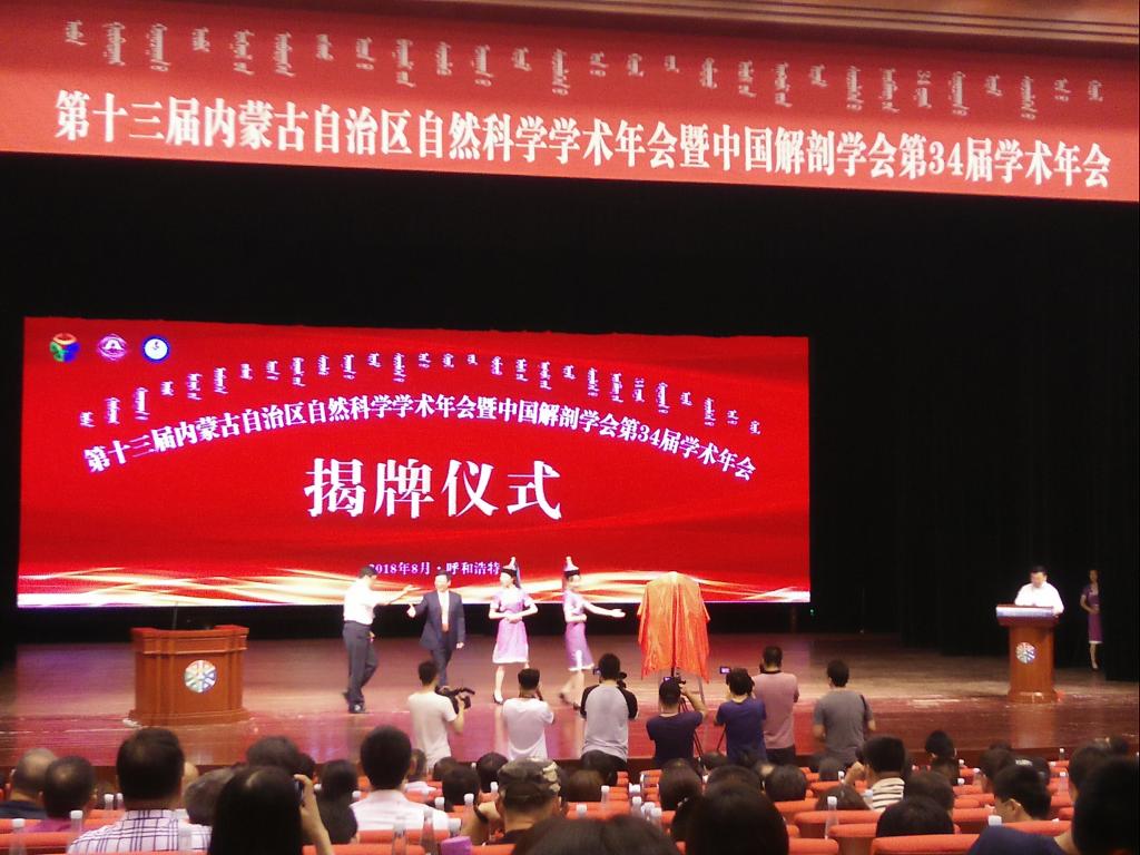 大会开幕式由内蒙古自治区党组书记麻魁主持,内蒙古自治区副主席、科协、教育厅、科技厅领导和解剖学会理事出席了大会开幕式。内蒙古医科大学白长明书记、中国解剖学会理事长张绍祥在开幕式上致辞,开幕式还举行了中国解剖学会向盟市科协捐赠图书和中国解剖学会内蒙古服务站成立揭牌仪式。