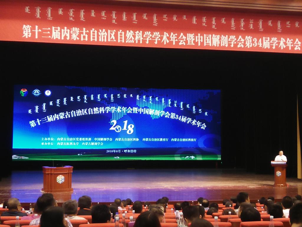 第十三届内蒙古自治区自然科学学术年会暨中国解剖学会第34届学术年会于2018年8月2日至8月4日在内蒙古呼和浩特市内蒙古人民会堂召开,本次会议由内蒙古自治区党委组织部、中国解剖学会、内蒙古自治区科协、内蒙古自治区教育厅、内蒙古自治区科技厅举办,内蒙古医科大学、内蒙古解剖学会承办。