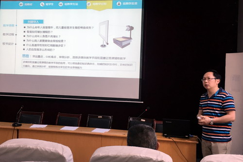 会议期间,开展了“说课”活动,由组胚教研室许晓源博士和药理学教研室黄爱君教授就课堂教学的教学手段、教学内容、教学设计等环节作了展示。两位老师精彩的说课赢得了大家的热烈掌声。