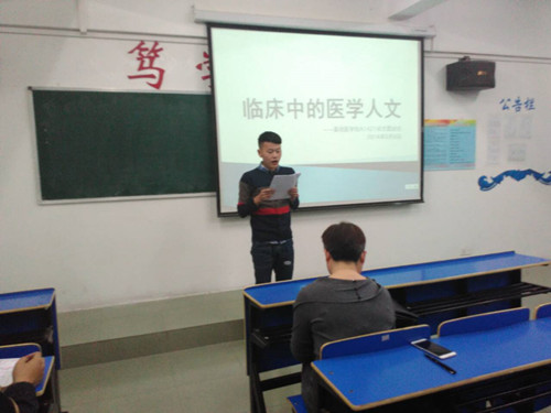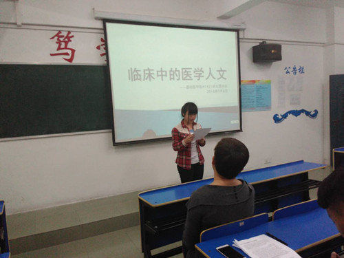 | 5月9日晚,基础医学院A1421定向临床班级于华文楼301召开“临床中的医学人文”主题班会,班主任何翠媛老师以及班级全体同学到场。  会上,各同学纷纷发表自己对临床中医学人文的看法,有的说,临床中的医学人文反映了人类对自身和社会环境认识的提高,是人类随着社会物质文明与精神文明的提高而自然提出的要求;有的说,医学人文的特性在于它的践履性和非实体性,在于其在践履中表现出的对人的关怀,在于其在科学实践中体现的人性而人文不存在具体的功利通途。最后班主任通过陈主任被患者杀害实例强调作为医生我们必须学会珍爱生命,敬畏生命,同时要学会保护自己。  此次班会旨在让同学们懂得真诚而热情地接近患者,关怀患者,尽力满足他们的需求尊重他们的生死权利,获取患者信任,这样才能具有医学人文精神。 |
