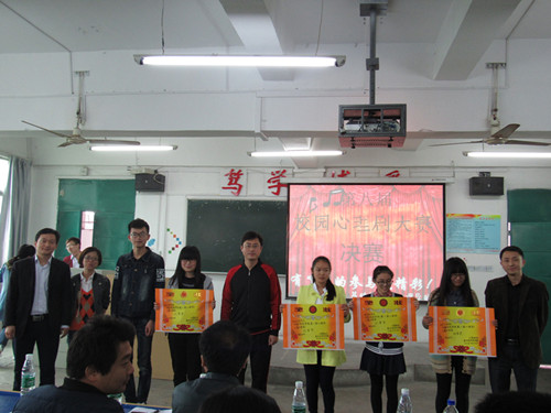 | 4月24日下午,以“关爱生命、阳光你我”为主题的基础医学院第八届心理剧大赛决赛于思阶四举行,基础医学院党委书记余朝阳、浔东学生科副科长汪兆年、基础医学院团委书记淦明南、学生科副科长张波、辅导员姚中平、班主任赵勇、王丽丽、黄涛老师和学生代表观看了此次大赛。   此次活动由基础医学院学生会心理导航部主办,参赛班级的剧情涉及到亲情、友情、爱情以及医患之间等多个方面,也充分反映了大学生在现实生活中遇到的各方面的问题,并给出了正确的解决途径。在赛场上,演员们充分的准备,丰富的感情、形象生动的表演将故事情节演绎得激动人心、扣人心弦,不时引起台下观众的热烈掌声。剧中很多片段也深深地触动了我们心中最柔软的部分,令人回味,令人深思。经过激烈角逐,定向班(A1521)的《梦想,又是一片蓝天》脱颖而出,他们用最真诚的宽容和体谅来化解室友间的矛盾,表演得淋漓尽致从而荣获一等奖,该剧也将代表学院参加全校的总决赛。本次共有八支队伍角逐桂冠,精彩纷呈。同学们将亲情,友情,爱情融入戏剧,在舞台上演绎自己身边的事,有冲突,有感恩,有感动,更有行动。   大赛最后,党委书记余朝阳进行总结点评。他首先肯定了同学们的表演与学生会的成功组织,他指出,校园心理情景剧是心理健康教育的一种独特方式,形式新颖、寓知识性、趣味性和教育性于一体,是大学生们喜闻乐见的校园文化,此次大赛充分展示了基础医学院学生的独特魅力,调动了学生积极向上的热情,形式好,内容好,效果好。他希望,同学们多一点爱心和关心、多一点理解和宽容,用眼睛发现美好,用心灵感受美好,用行动创造美好,用舞台演绎美好,使每一个大学生都能在阳光和谐的环境中健康快乐成长,同时他也提出了心理剧要多与医学专业特色相结合的希望。   最后,基础医学院领导、老师为获奖班级颁发了奖状并合影留念。  此次大赛,既激发了同学们的创造才华,体现了各班的凝聚力,又丰富了大学生校园生活,也使全院师生更加关注心理健康,并推动基础医学院心理健康教育进一步开展。 |