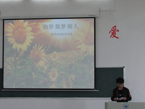 演讲结束后,基础医学院党委书记余朝进行点评并作总结性讲话,他说:“社会需要正能量,我们更要充满正能量,拥有正能量,拥有阳光心灵,我们才会更努力更拼搏”。同时,他还告诫同学们要清楚自己肩负的责任,要懂得感恩国家、感恩社会、热爱国家并学好专业知识来回报我们的国家、社会和人民。