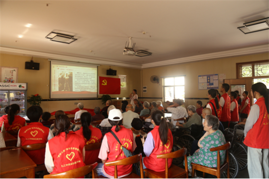 宣讲团于5月18日前往南山老年公寓为老人们带来一场不一样的井冈山精神宣讲。不同于青少年,老年人对于红色精神具有独特的见解。在宣讲团带领下,老人们追忆井冈山革命岁月的同时,老人们也会与宣讲团成员回忆自身经历,为宣讲团成员讲述红色故事。