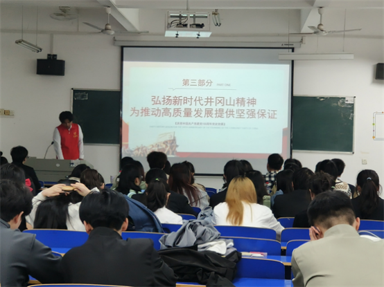 走进校园,宣讲团以多个活动为载体,分别向基础医学院普通同学、23级大学生骨干培训班成员、入团积极分子、学生干部等群体进行井冈山精神宣讲。“井冈山精神作为中国共产党人精神谱系的伟大精神之一,坚定信念、艰苦奋斗、实事求是、敢闯新路、依靠群众,勇于胜利是井冈山精神的主要内容,也是当代青年所应汲取的精神力量。”在5月23日基础医学院学生干部红色教育培训会上,宣讲团为基础医学院学生干部进行了井冈山精神宣讲。通过宣讲团成员详细的讲解,同学们纷纷表示对井冈山精神有了更加深入的了解。