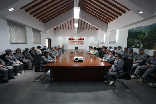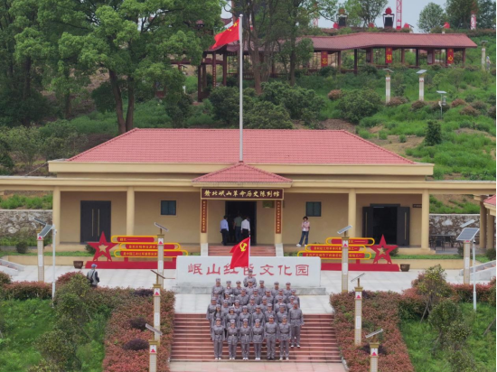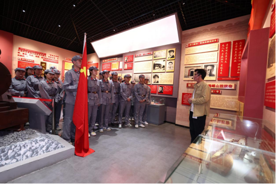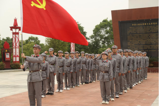 在岷山红色文化园,全体学生党员和团学干部统一穿着红军服,开始了一场特殊的跨时空体验。大家整队后举着党旗,前往赣北岷山革命历史陈列馆,切身感受那段悲怆而又伟大的革命事迹,再次重走红色革命征程。讲解员带领大家一同回忆着岷山革命根据地发生的一段段革命感人事迹。一幅幅红色图片,一件件战争实物,无不诉说着那段峥嵘岁月里无私奉献、不怕牺牲的红军战士英勇壮举。