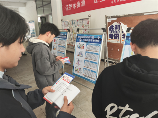 宣讲结束后,九医杏林青年志愿者服务队积极行动起来,带领同学们参观了义丰楼大厅的法律知识宣传栏,并分发了网络安全宣传手册。他们鼓励同学们将所学到的网络安全和反诈骗知识传递给身边的人,共同提高大家的防范意识。同学们纷纷表示,通过此次活动,他们对网络安全有了更深入的认识,也深刻体会到了遵守网络法规的重要性,学到了很多实用的法律知识,受益匪浅。