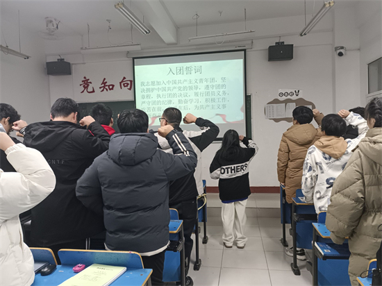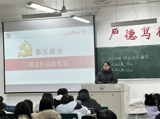 医学院团委副书记樊云燕总结发言,其中有批评与嘉奖,有欣慰期待,表达了对同学们这一学期工作学习方面的肯定,同时也提出了对新学期的展望,并且要求同学们以后要更加努力为班级做出贡献。最后,全体同学起立,重温入团誓词,再次坚定地表达了青年大学生对团组织的忠诚与承诺。