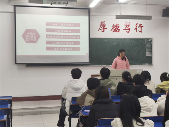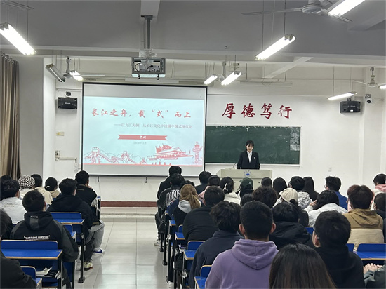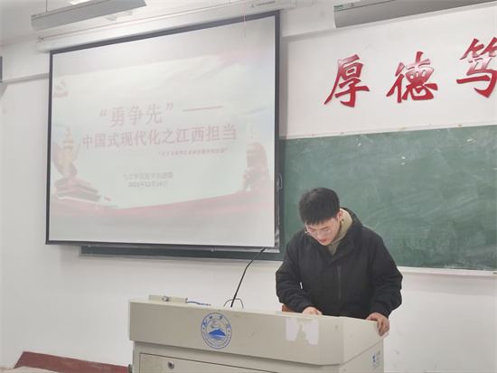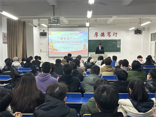 修天宇、申妍、谢志远、刘旭辉、黄宇昕、陈琦琪等宣讲员结合实际学习生活经历,为同学们从中国式现代化之江西担当、构建江西现代化产业体系、以九江为例从长江文化中读懂中国式现代化、共建绿色江西生态文明高地四个方面传达学习习近平总书记考察江西的重要讲话精神习近平总书记的讲话鼓励广大青年必须挺膺担当,以更加自信自强的精神姿态保护好、传承好长江文化,用年轻的声音讲好长江故事,擦亮中华文化名片,助力长江之舟劈波斩浪,推动中国式现代化行稳致远。