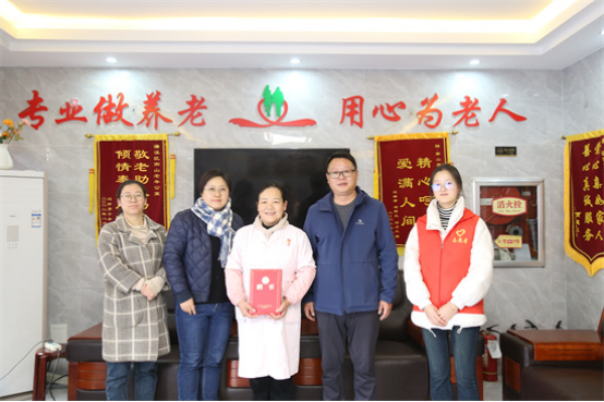 刘频健为南山老年公寓院长江平颁发校外辅导员聘书。江平是一名老党员,担任着濂溪区南山老年公寓党支部书记、九江市义工联合会副会长等职务,是江西省红十字会养老服务培训骨干师资。近十年来,她全身心投入爱老、敬老、助老活动,把业余时间全部献给了她所热爱的志愿者事业,深受服务对象的热爱和广大志愿者的敬佩