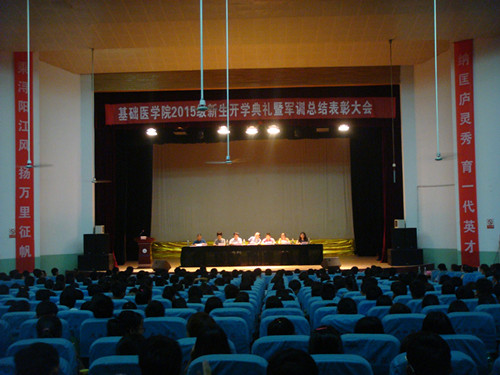 9月18日晚,基础医学院2015级新生开学典礼暨军训总结表彰大会于浔东大礼堂举行。学生处副处长付和忠、浔东管理办公室副主任周学英、基础医学院院长车向新、党委书记余朝阳、副院长郑美蓉、汪鑫,办公室主任李美秀出席本次大会,学生科、团委负责人,全体新生辅导员、班主任及2015级新生参加大会。大会由郑美蓉副院长主持。