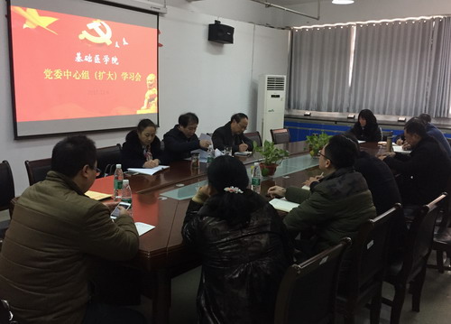 12月6日上午,基础医学院党委中心组(扩大)学习会在华文楼105会议室召开。基础医学院党委书记余朝阳,院长车向新,副院长郑美蓉、汪鑫,党委委员傅文学以及各科室负责人、教研室主任、支部书记参加了扩大学习会。会议由余朝阳主持。