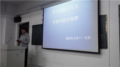 为了重点提升支部成员党性修养,引领支部成员从思想上,行动上向党组织靠拢,11月23日晚,基础医学院模拟党支部十一支部全体成员在华文楼103开展了“学习贯彻十九大,书香共筑中国梦”—《决胜全面建成小康社会夺取新时代中国特色社会主义伟大胜利》学习交流会。