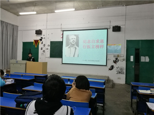 此次活动大家学习的红色医生是著名的加拿大共产党员,国际主义战士,胸外科医师诺尔曼·白求恩。活动主要采取PPT播放形式,播放有关白求恩的相关视频,随后大家进行交流,分享自己的感想。在活动过程中,同学们都积极的发言,跟大家分享自己的看法。最后指导老师作了总结发言,要求同学们树立正确的价值观,正确对待名利地位,刻苦学习,弘扬艰苦奋斗的精神。