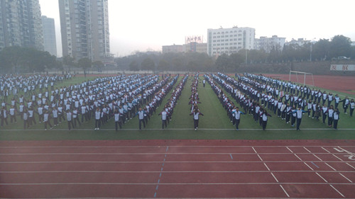 周一至周五清晨,广播体操音乐如期响起,同学们自觉按体操队形散开,开始一天的早操锻炼,每周一在参加升国旗仪式之后,晨颂活动开始,几位体育部成员用高亢的声音开始了领颂,有杜甫的《春望》、文天祥的《过零丁洋》和毛主席的《七律长征》等。一时间,同学们的朗读声弥漫了整个操场。