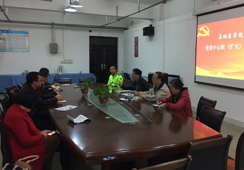 10月30日下午,基础医学院在华文楼105会议室召开党委中心组(扩大)学习会,专题学习贯彻十九大会议精神。基础医学院院长车向新、副院长郑美蓉、党委委员傅文学以及各科室负责人参加了专题学习会。会议由党委书记余朝阳主持。