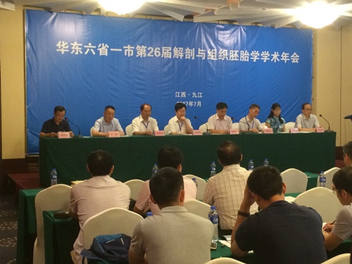 为促进华东地区解剖学界的学术交流,增进兄弟院校的友谊,7月17-19日华东六省一市第26届解剖与组织胚胎学学术年会于在江西省九江市隆重召开。来自山东、安徽、江苏、江西、浙江和福建省及上海市等多所医药院校的120余名专家学者齐聚九江。我校基础医学院受江西省解剖学会委托作为承办单位,具体承办此次大会,江西省解剖学会秘书长刘曾旭教授主持开幕式。