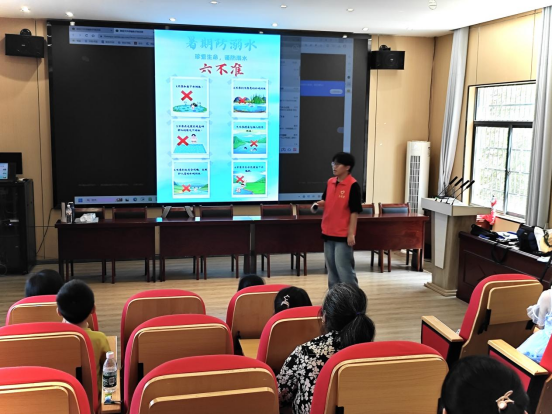 在城门乡贤馆,孩子们的求知若渴吸引了实践队的到来。实践队通过互动问答的形式,为小朋友们进行了口腔健康宣传,增强了小朋友们对口腔卫生的重视程度;通过多媒体,以提问、绕口令、诗歌朗诵等形式向小朋友们推广普通话,强调讲好普通话的重要性;利用小圆桌零距离交流的方式,辅以具体案例,向孩子们讲述了《中华人民共和国未成年人保护法》和防溺水等相关内容。在一教一学中,双方都有了新感悟、新收获,为孩子们的健康成长保驾护航。