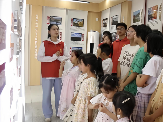 在城门乡贤馆,实践队通过游戏互动与讲解PPT的形式,向小朋友们宣传红色知识。大家通过集体朗诵红色革命诗词、歌唱红色经典歌曲、“你猜我想”游戏,加深了小朋友对红色知识的了解和记忆;通过ppt图文结合的形式,为孩子们讲述了长征路上发生的血战湘江、遵义会议、四渡赤水等一系列重要事件和长征精神的内涵。队员与孩子们一同在在欢声笑语中传承红色基因,赓续红色血脉,在孩子们的心中植下了爱党爱国的小小种子。