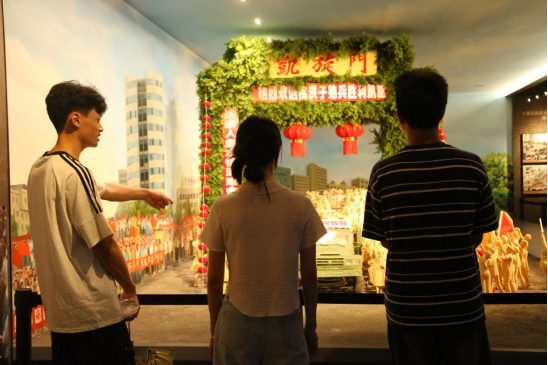 在九江市抗洪纪念展馆,实践队通过参观那段惊心动魄的历史,认真领悟“抗洪精神”这一共产党人的精神谱系的重要组成部分;深刻感受到在党的领导下,中国军民万众一心、众志成城的强大凝聚力。