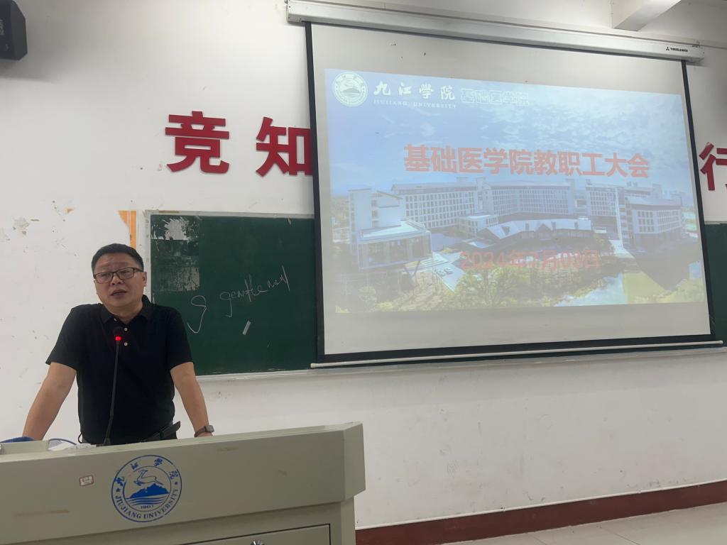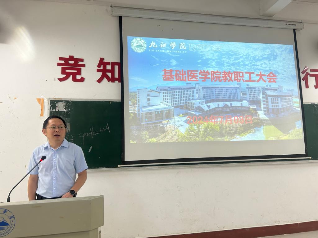 期末放假前夕,基础医学院于7月3日上午9点在义丰楼106室召开全院教职工大会,布置期末相关工作。学院党委书记许晓源主持会议。