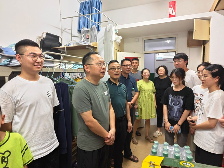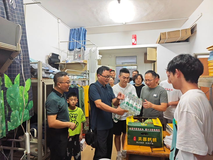 “你们在哪个医院实习?”“对下一阶段的专业实习有什么想法?”“暑假住校有没有什么需要学院帮助解决的困难?”“考研复习进行的怎么样?”在17栋学生宿舍里,院领导给同学们送上慰问品,亲切地询问和了解20级实习生的专业实习情况,就他们假期留校生活遇到的困难进行了答疑解惑,叮嘱同学们妥善安排好考研复习和实习工作,注意防暑降温,劳逸结合,上班途中注意交通安全。