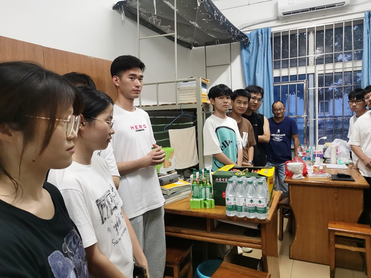 7月25日晚,基础医学院院长许晓源、党委书记张辉带队走访慰问暑假期间留校的师生,学院党委副书记刘频健,副院长熊建军、陈川参加了此次慰问活动,教务科、学生科、思政科负责人和辅导员陪同走访。