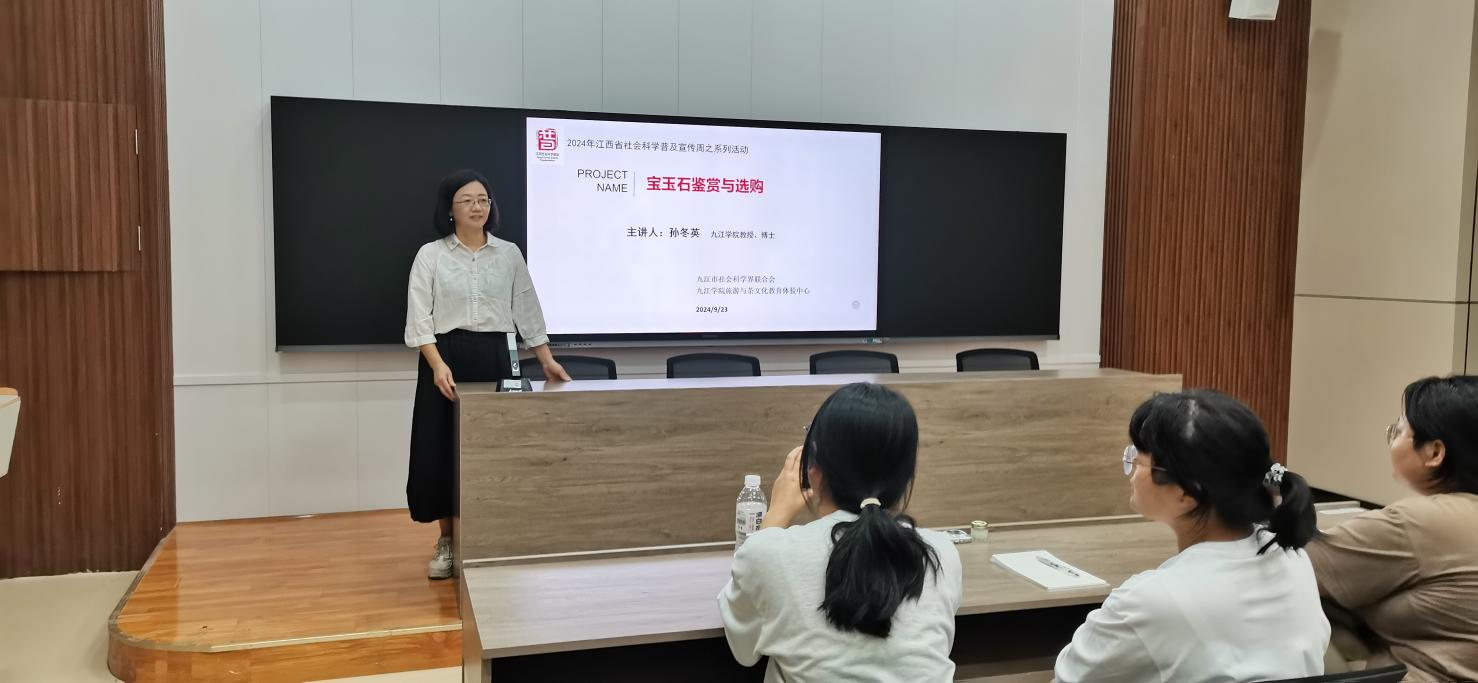 为了进一步传播宝石文化,提高同学们对宝石的认识,2024年9月23日晚上,学院邀请孙冬英教授,在实训教室为新生同学作了一场题为“宝石鉴赏”的专题讲座。讲座由学院党委书记张辉主持。