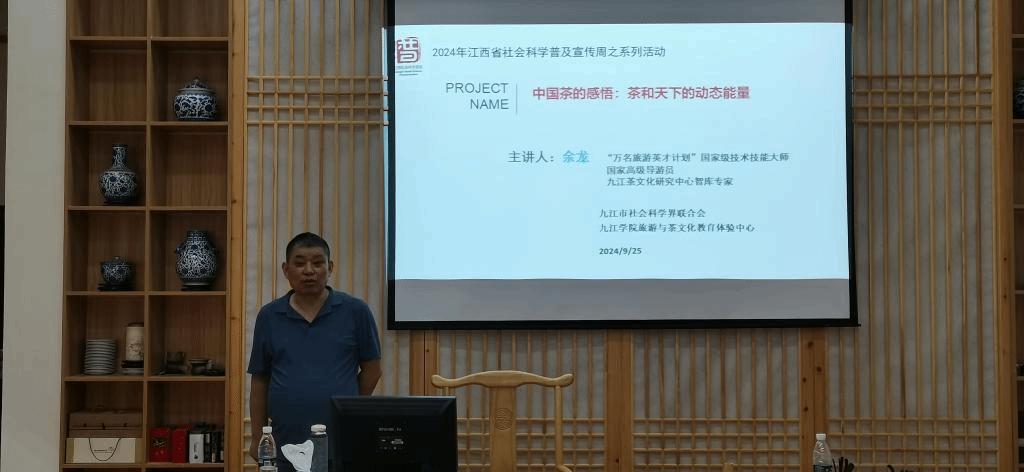 在喜迎建国75周年之际,为了让更多学生了解中国茶的悠久历史和深厚文化,感悟新中国成立以来中国茶的经济、社会和文化价值,特别是茶在构建和谐社会与和平世界的独特价值,9月25日晚上,学院邀请九江市茶文化专家余龙老师在茶艺实训室举办了“中国茶的感悟:茶和天下的动态能量”专题讲座。讲座由学院党委书记张辉主持,2024级预防医学专业部分学生参加了讲座。