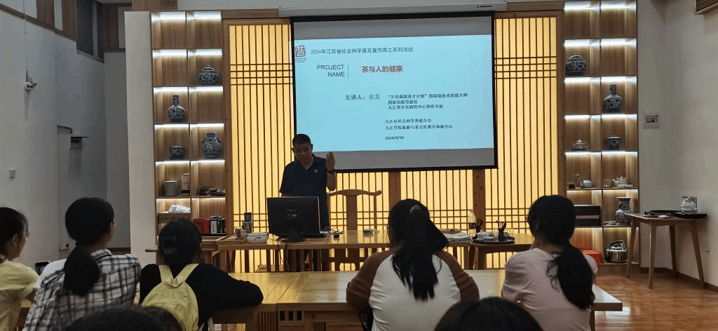 茶被认为是世界上最健康的饮料,唐代医学家陈藏器将茶誉为“万病之药”。科学研究发现,长期适量喝茶有助于增进人的身心健康,具有良好的养生保健作用。为了让同学们更好地了解茶叶中的主要特征性成分的健康功效,掌握科学的饮茶方法,通过科学饮茶增进身心健康,9月26日晚上,学院特邀九江市茶文化专家余龙老师在茶艺实训室举行了“茶与人体健康”专题讲座,讲座由学院党委书记张辉主持,2024级口腔专业部分学生参加了讲座。