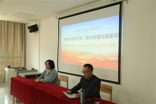 为进一步加强青年学生思政工作,提高学生干部思想政治素养及工作能力,推动学院团学工作奋力开创新局面,基础医学院于10月25日在医创中心635教室组织召开了新一届团学组织学生干部思政工作培训会。基础医学院党委书记张辉以“新岗位奋发有为,新征程谱写新篇章”为主题,结合学习贯彻党的二十届三中全会和学校第二次党代会精神,向学院新一届团学组织学生干部提出了明确的工作要求。学生科科长陈文雯主持会议。基础医学院团委、学生会100余名学生干部参加了本次培训会。